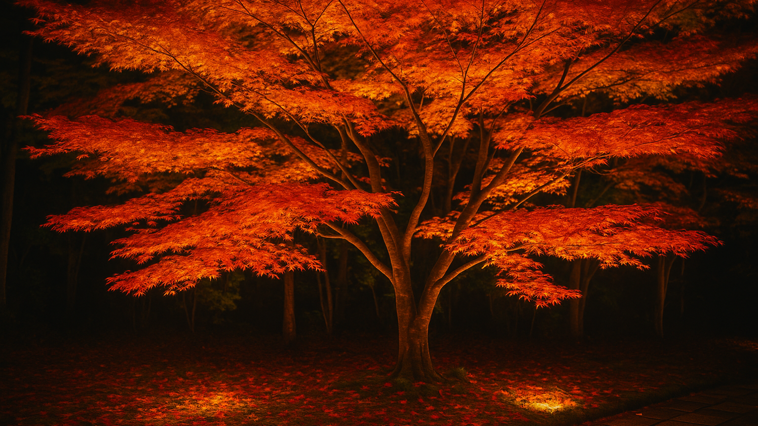 秋の特別行事として、境内の庭園と山門を夜間特別公開いたします。ライトアップされた紅葉と、闇に浮かぶ本堂の荘厳な姿は、日中とはまったく異なる幻想的な趣。